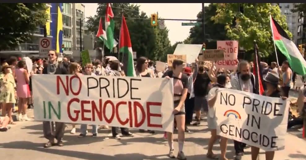 Many community organizations in Vancouver are also boycotting Vancouver Pride by not marching and participating including the Rainbow Refugee Society, Salaam, Trikone, Seeds, Queers Against Israeli Apartheid and Queer Collective for Palestine. Vancouver Pride has lost a lot of its corporate sponsorship this year including lulu Lemon which also funds the Israeli genocide of Palestine and has had to downsize. But they refuse to drop The TD bank as their major sponsor.